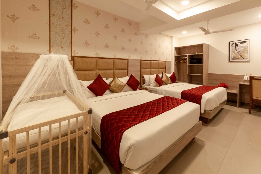 The Palace Premium Family Room offers spacious comfort wrapped in graceful design. Heritage tones and soft textures create a warm, restful ambiance. Perfect for families who desire room to unwind and truly relax. Comfortable, elegant, and thoughtfully made for togetherness.
