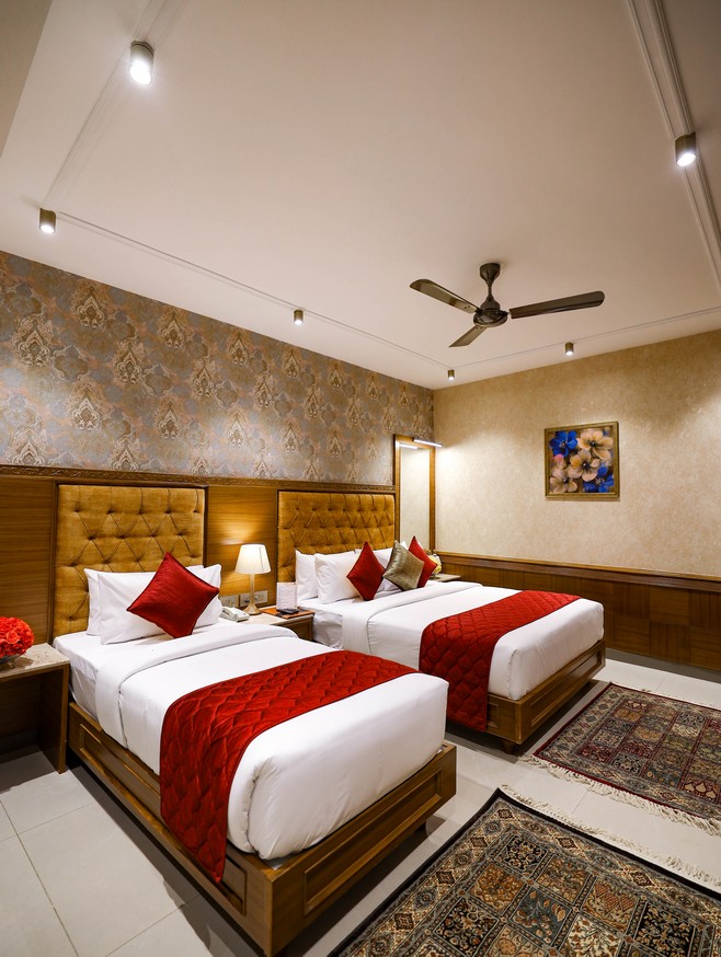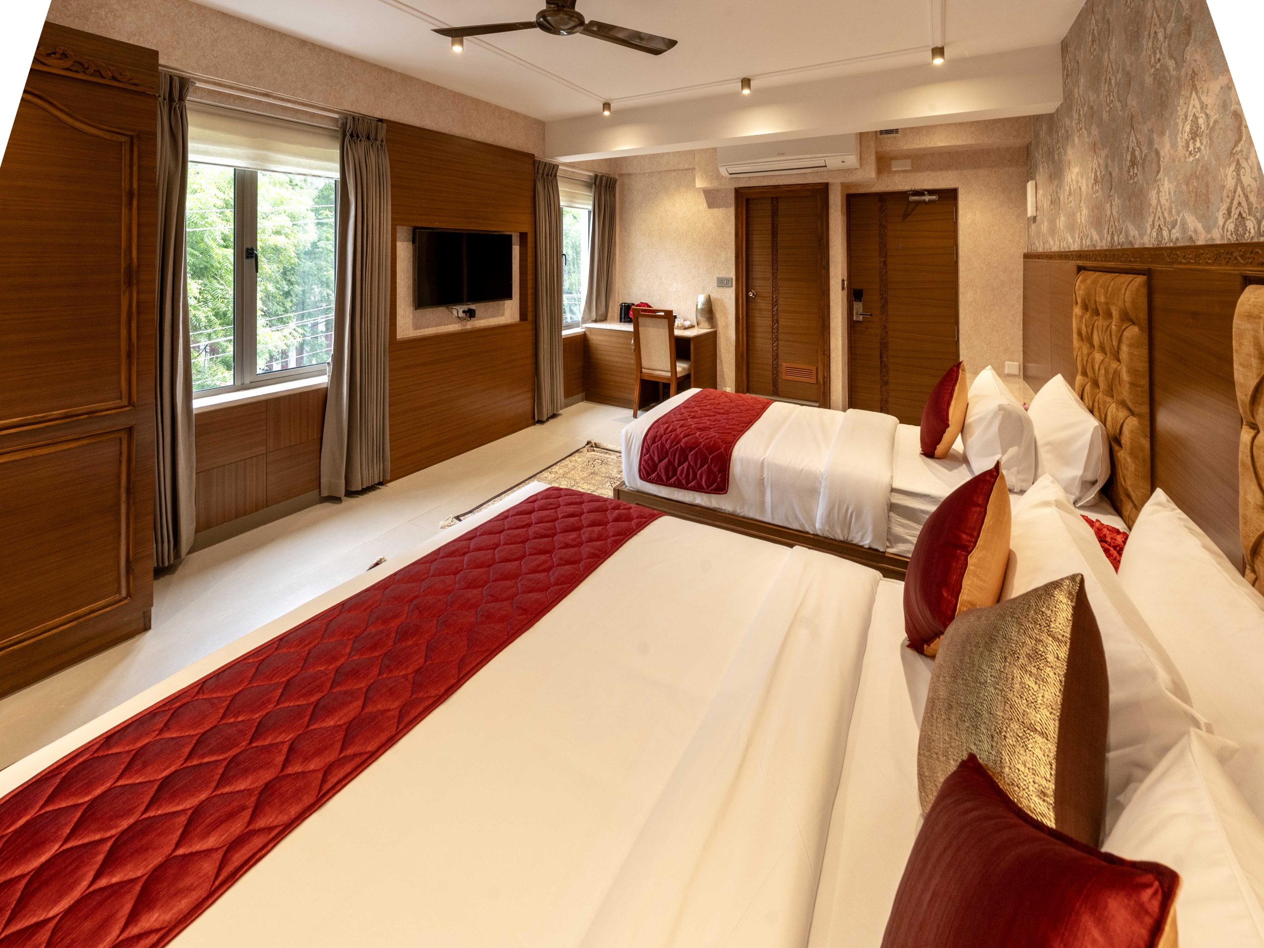 The Royal Luxury Suite is a timeless blend of classical heritage and modern elegance. Rich textures, curated décor, and warm tones create an ambiance of regal comfort. Gaze upon the majestic Meenakshi Temple from the privacy of your suite. Every moment here evokes grandeur, serenity, and a deep sense of place.